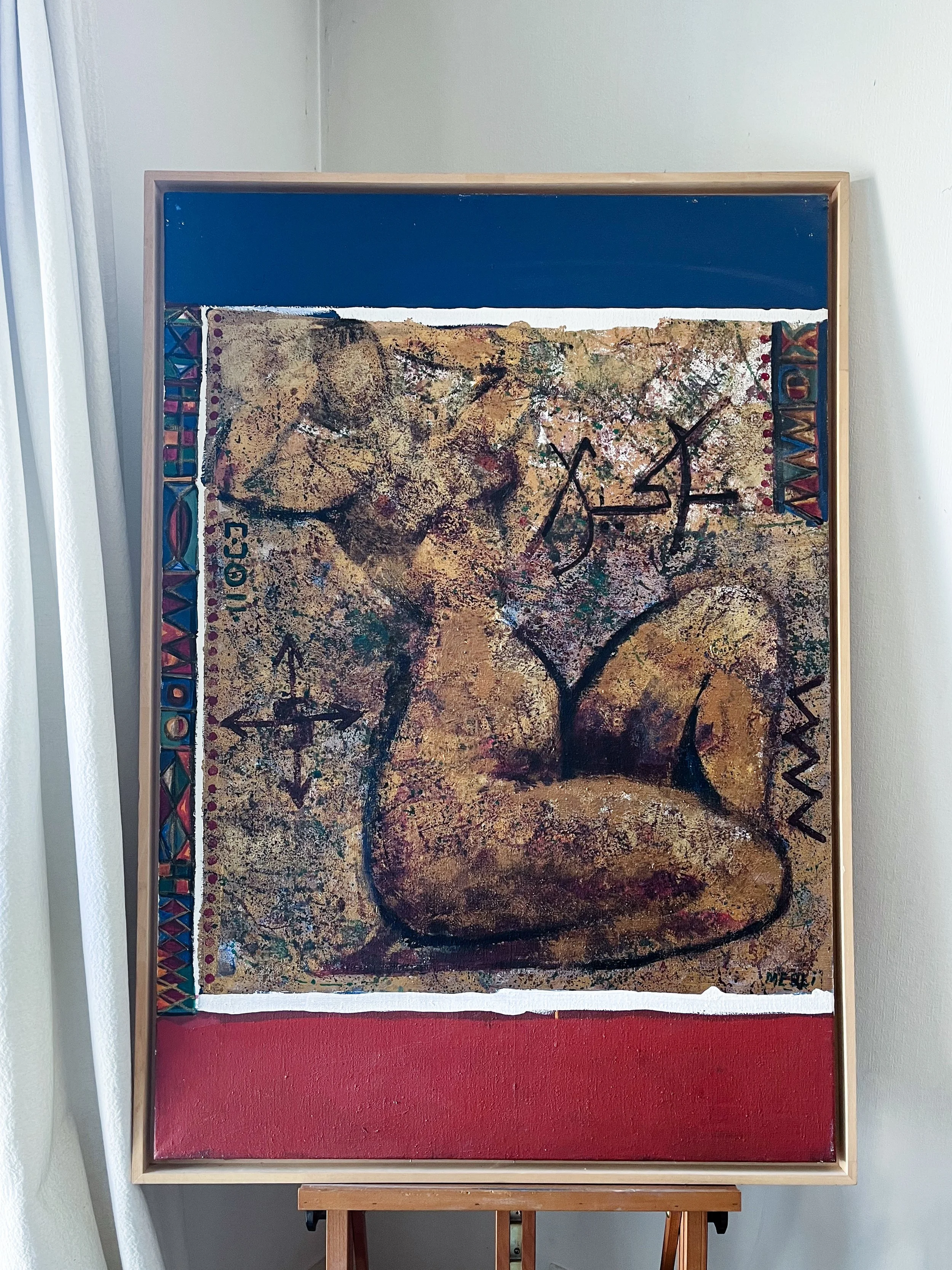 Mesli’s love for Algeria materializes through a stylized and overtly sensuous female figure (Fig. 4). How can we identify her? Her form is shapely, her legs long and tapering; she boasts a cinched waist and brawny thighs that contrast dramatically with her thin, wilted head. She is undaunted. She is at times named after localities, such as Tlemcen (Fig. 5), a city in northwestern Algeria and the birthplace of Mesli, or the light that irradiates the colors of the capital, such as Algiers’ Sun; at other times, she stands for the legendary Tin Hinan, the ancestor queen of Amazigh peoples. This leitmotif, present since the 1960s, marks a dual departure—philosophical and stylistic—from the Paris school that initially shaped Mesli’s artistic sensibility and illustrates how the artist sought to reclaim and reinhabit a storied landscape. In this sense, the Meslinian female figure appears to us as a homecoming, a symbolic embodiment of Algeria itself.